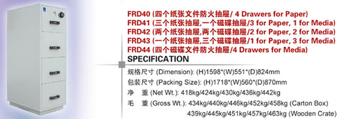.聯鎖裝置:出廠標配,啟用聯鎖則除最上面一節抽屜需要防火鑰匙鎖外,其余抽屜可以由最上面一節抽