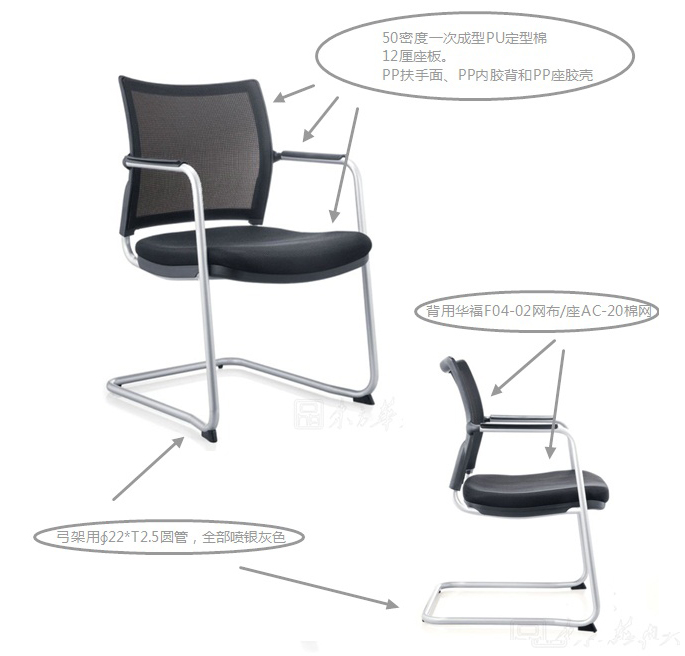 座膠殼,弓架用∮22*T2.5圓管,全部噴銀灰色,背用華福F04-02網布/座AC-20棉