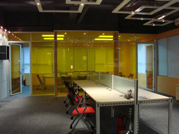 鋁框中夾裝玻璃,玻璃為12mm鋼化玻璃,對空間起到良好的采光效果。整體風格簡潔明快,非常適合現代時尚辦公空間。