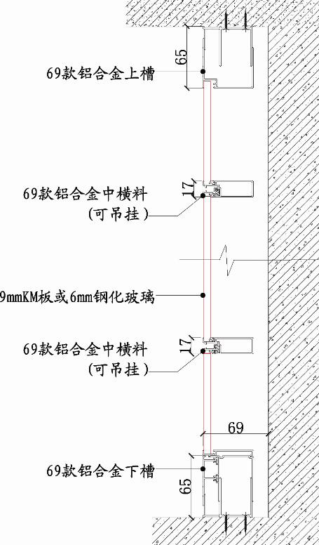 69款單面隔墻相關數據參數大致如下:69款單面隔墻壁槽用6908側柱收邊,側柱厚度為:15mm,上槽為:55mm,下槽為:65mm,橫壓條為:17mm,豎壓條為:13mm。
