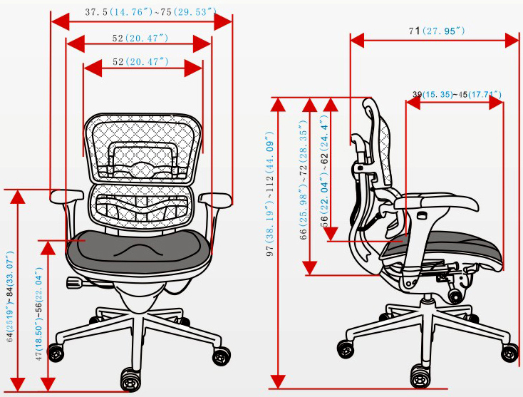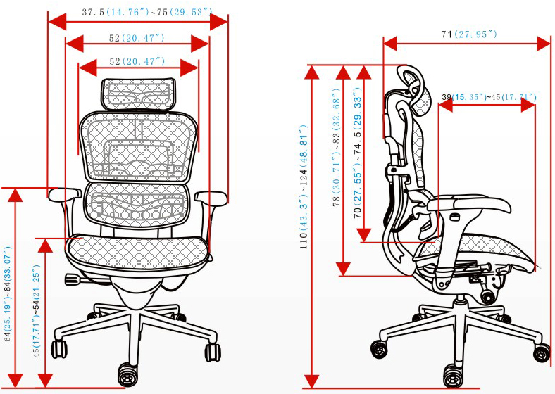 CG-SLAMErgohuman辦公椅規(guī)格圖