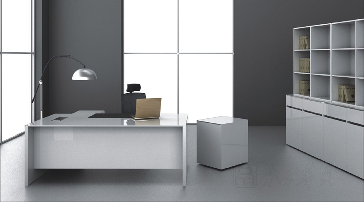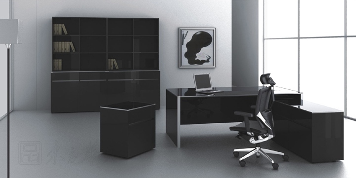 桌面配置有先進的多功能電動旋轉插座,滿足現代辦公的要求。鏡面高光的環保UV漆飾面,漆膜飽滿、平整光亮,充分體現了現代辦公環境得到寧靜與明亮。
